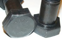 The head of a bolt is formed by heating the end of a piece of steel round bar and then forging (reshaping) the heated end into a head. The head is not welded on or otherwise attached to the end of the round bar.For example, the production of a 1 diameter x 12 long A 325 bolt begins by cutting a 20 ft. length of 1045 steel round bar into 13-11/16 pieces. Since the finished bolt length of 12 is measured from the end of the bolt to the underside of the head, we must add 1-11/16 to the cut length of the bolt. After cutting the bolt to length, this added material (1-11/16) is heated to approximately 2000 degrees Fahrenheit and forged into whatever head style the specific bolt requires. In the case of an A325 bolt, the head style is a heavy hex structural bolt. After the head is forged, an A325 bolt undergoes a heat-treating process in which the bolts are quenched and tempered to develop the high strength mechanical properties required by the specification. The next step in the process is to test the bolts to ensure that they meet the strength requirements. After verification, they are threaded with 1-3/4 of 8 pitch Unified National Coarse thread.Information provided by Portland Bolt & Manufacturing Company, www.portlandbolt.com